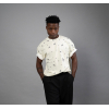 - Print: A subtle, tonal all-over graphic motif (think abstract leaves or minimalist symbols) in muted green-grey on an off-white base. Quietly artistic, never loud.